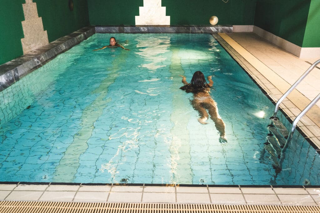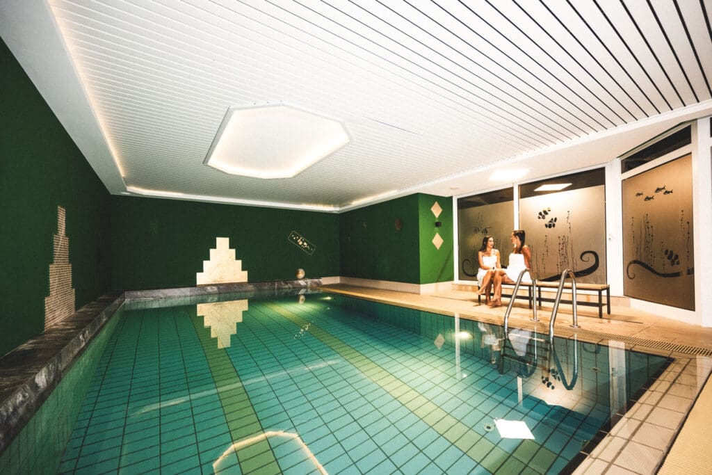 Unser Wellnessangebot umfasst ein Schwimmbad und eine Sauna. Die Sauna lädt zum Schwitzen und Regenerieren ein, während die Ruhebereiche die perfekte Umgebung bieten, um sich zurückzulehnen und zu entspannen.